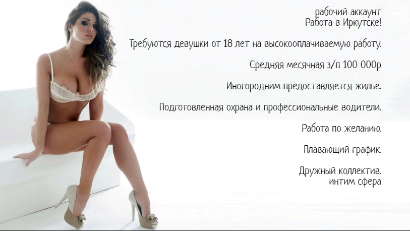 Ищу девушек для работы в иркутске на апартаментах!Высокий доход,гибкий график ,строгая анонимность.Мы ждем вас:) 89246266234